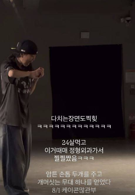 또한 그는 "24살 먹고 이거 때매 정형외과 가서 질질 짰음. 암튼 손톱 두 개를 주고 개 머싯는 무대 하나를 얻었다. 8/1 케이콘 많관부"라며 부상을 입은 이유가 공연 준비 때문임을 알렸다.