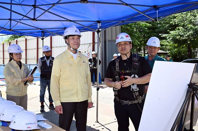 건설 현장에서는 온열질환 예방을 위한 휴식 시간 보장 여부와 그늘막·보냉장구 설치 상태를 확인했고, 마을회관에서는 무더위쉼터 냉방시설 운영과 이용 편의성을 살폈다. 이어 비닐하우스 농가를 방문해 농업인 건강관리와 폭염 피해 예방 대책도 확인했다.