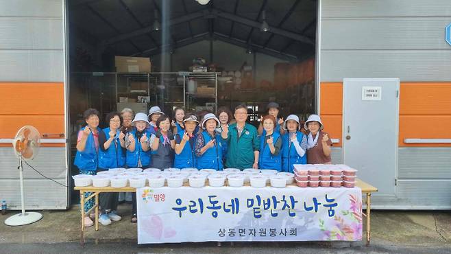 밀양시 상동면 자원봉사회(회장 강윤자)는 22일 상동면 행정복지센터에서 ‘7월 우리 동네 밑반찬 나눔’을 펼쳤다.