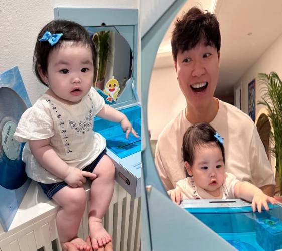 거울이 달린 턴테이블을 본 현조는 거울로 돌진했고, 선물이 마음에 든 듯 활짝 웃는 현조의 모습이 귀여움을 더했다.