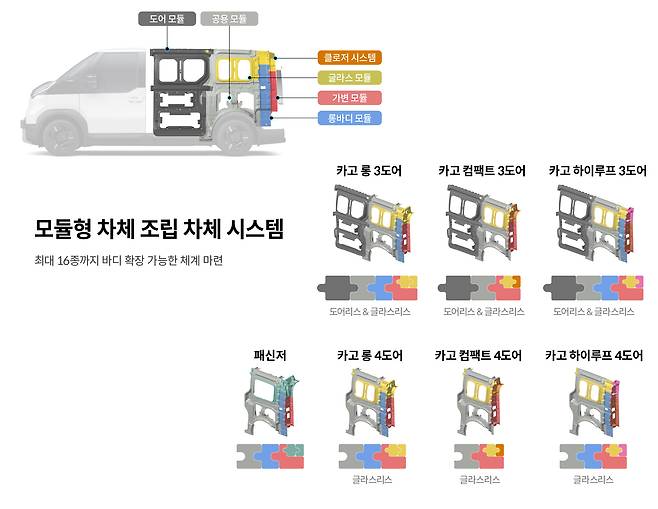 이러한 사용성 기반 접근은 차 구조와 개발 생태계까지 바꾸는 계기가 됐다. 기아는 PV5에 ‘플렉시블 바디 시스템(FBS)’이라는 모듈형 차체 구조가 대표적이다. 앞부분은 공통 구조를 적용하고, 뒷부분은 목적에 따라 슬라이딩 도어, 리프트 게이트, 글라스 유무 등을 조합해 최대 16종의 바디 타입을 구현할 수 있도록 설계했다.