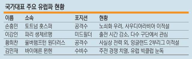 북중미월드컵에서 2022 카타르월드컵에 이어 사상 첫 2회 연속 16강 진출을 노리는 한국에도 유럽파 관리는 핵심 사안이다. 한국의 주축 자원은 대부분 유럽 리그에서 활동 중이다. 붙박이 주전인 손흥민(토트넘 홋스퍼)과 이강인(파리 생제르맹), 황희찬(울버햄프턴 원더러스), 이재성(마인츠), 김민재(바이에른 뮌헨), 황인범(페예노르트) 등이 대표적이다. 그리고 여러 기대주들도 유럽 무대에서 뛰고 있다.