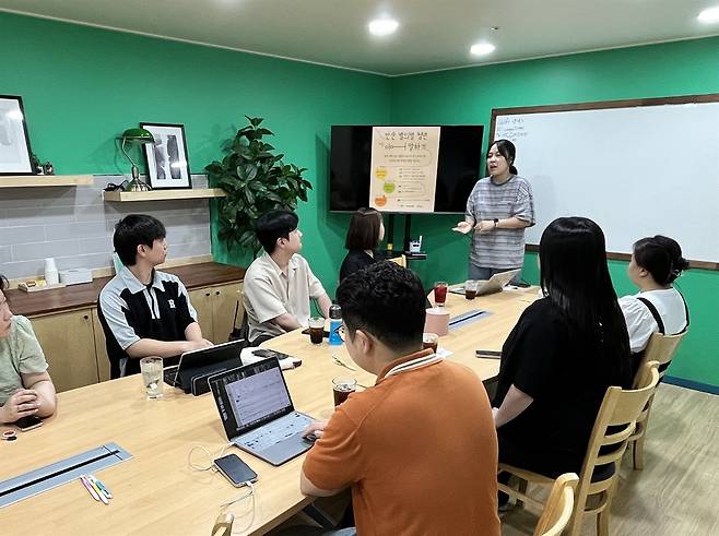 | ▲ 안산 별의별 청년이어말하기 진행자들이 참가자들에게 별의별 청년 이어말하기 프로그램을 설명하는 모습 |