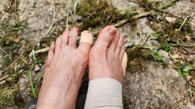 | ▲ 온갖 테이프로 감아 놓아도 물집은 피해 갈 수 없었다. |