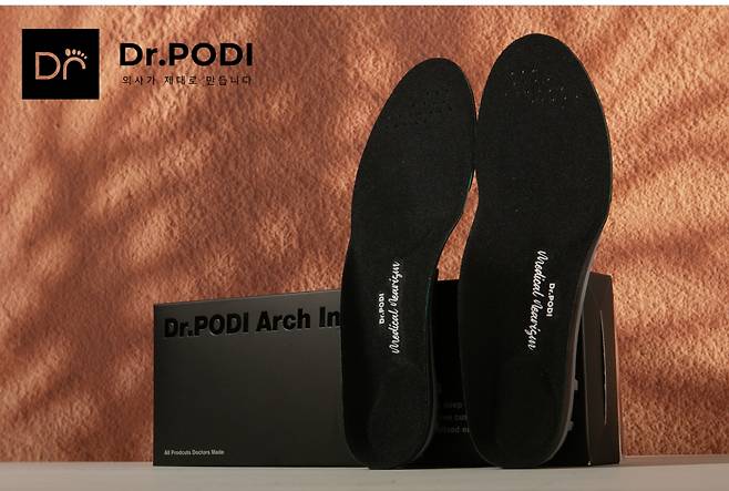 닥터포디는 사용자가 직접 발 모양과 아치 높이에 맞춰 자유롭게 조절할 수 있는 '셀프 아치 블럭 시스템'이 특징이다. 충격 흡수와 복원력이 높은 포론(PORON) 소재를 사용해 보행 시 발의 부담을 줄이고 장시간 착용 시에도 편안함을 유지할 수 있도록 설계됐다.