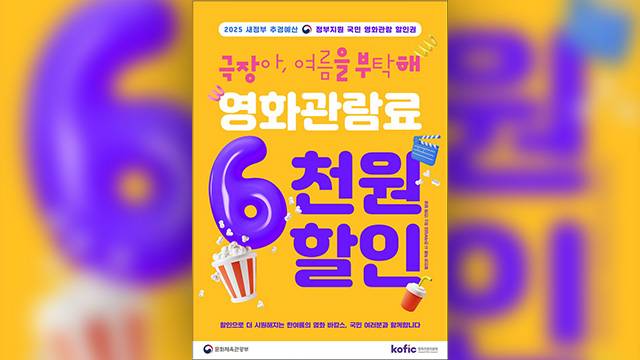 문화체육관광부와 영화진흥위원회가 오는 25일 오전 10시부터 영화관 입장권 6천 원 할인권 총 450만 장을 배포한다고 밝혔습니다.