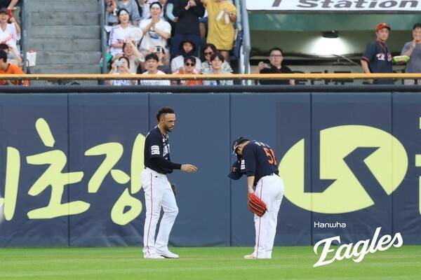 리베라토의 다이빙 캐치는 동료들도 믿을 수 없는 장면이었다. 좌익수 문현빈은 리베라토가 타구를 잡자마자 세레머니를 대신했고, 2루수 하주석 역시 리베라토의 공을 받은 뒤 그에게 손가락으로 찬사를 보냈다. 투수 문동주도 그에게 고마움의 표시를 날렸다.