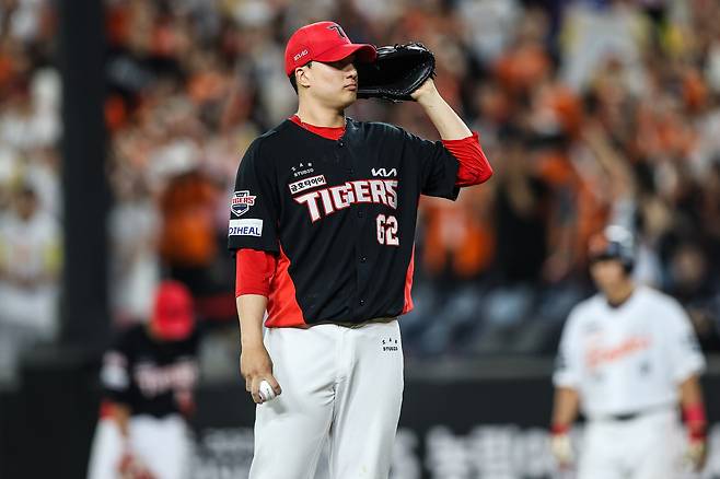 9회초 LG 공격. KIA 이범호 감독의 선택은 당연히 마무리 정해영. 이날 경기 전까지 25세이브를 기록 중이던 정해영은 이날 세이브를 추가하면 세이브 1위 박영현(KT, 26세이브)와 어깨를 나란히 할 수 있었다.