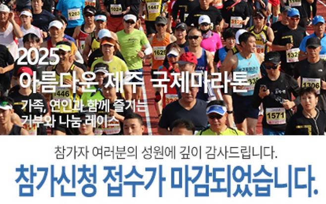 아름다운제주국제마라톤 사무국은 23일 오전 9시를 기해 선착순 5000명의 접수가 완료됐다고 밝혔다. 이는 지난 18일 접수 창구를 연지 5일만이다.