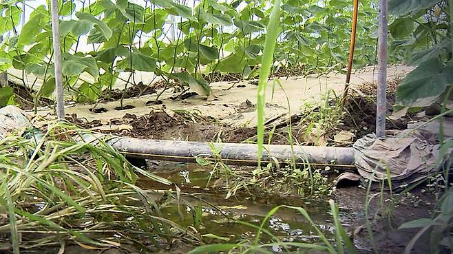 ▲ 전남 구례 폭우에 비닐하우스 농작물 침수된 모습