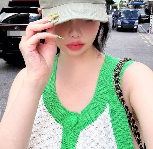 사진 속 그는 연한 카키 컬러의 모자를 푹 눌러쓴 채 카메라를 지그시 바라봤다. 진하게 그린 언더 아이라인으로 과감한 메이크업을 선보인 가운데 사이드붑(옆가슴을 노출하는 스타일) 니트를 입고 시원한 서머룩을 완성했다. 초록색 의상에 맞춘 센스 넘치는 네일아트까지 인상적. 박봄은 시크하면서도 도도한 느낌을 자아내며 시선을 사로잡았다.
