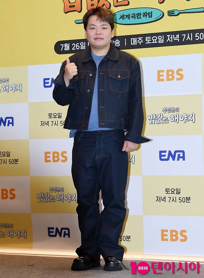 여행크리에이터 곽준빈이 23일 서울 영등포구 여의도 IFC서울에서 열린 ENA, EBS 공동제작 <추성훈의 밥값은 해야지> 제작발표회에 참석해 포즈를 취하고 있다. 추성훈의>