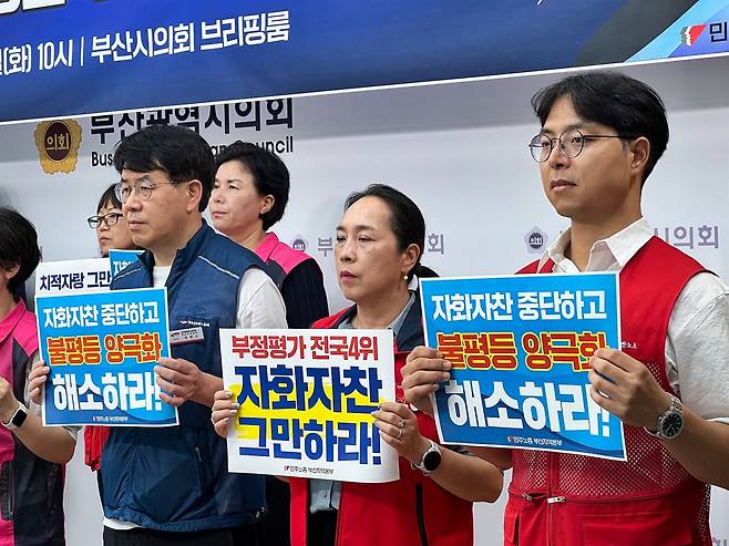 이들은 "박형준 시장은 취임 3년 기자회견을 통해 일자리 창출, 투자유치, 관광객 유치 등의 치적을 자랑했다"면서 "박형준 시장의 허울뿐인 치적자랑을 규탄하며 일하는 노동자·시민들의 실질적인 삶을 개선할 수 있는 정책 전환을 강력히 요구한다"고 했다.