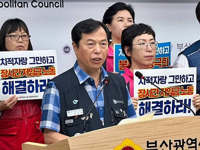 공공운수노조 부산본부 고광용 부본부장은 "사회서비스원에서 종합재활센터를 운영하지 않는 곳은 부산과 울산 중구뿐이다. 부산시 사회서비스원 출연금은 인구 70만 제주도보다 적은 금액으로 추산되고 있다. 17개 광역 지자체 중 전국 꼴찌다. 부산 지하철 청소 노동자들은 주 6일과 야간 연속 근무에 시달리고 있다. 부산시의 대표적인 공공기관인 부산교통공사에서 일하는 청소 노동자들이 이렇게 시대 착오적인 장시간 노동을 하고 있다. 박 시장이 부산 지하철 청소 노동자 장시간 노동을 즉각 해결하기를 강력히 촉구한다"고 전했다.