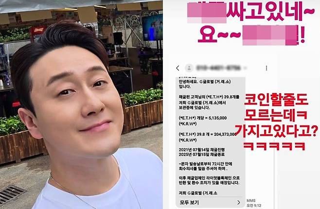 문자는 김원효가 채굴한 코인이 거래소에 보관됐고 그가 회수 의사를 밝혀야 한다는 내용이었다.