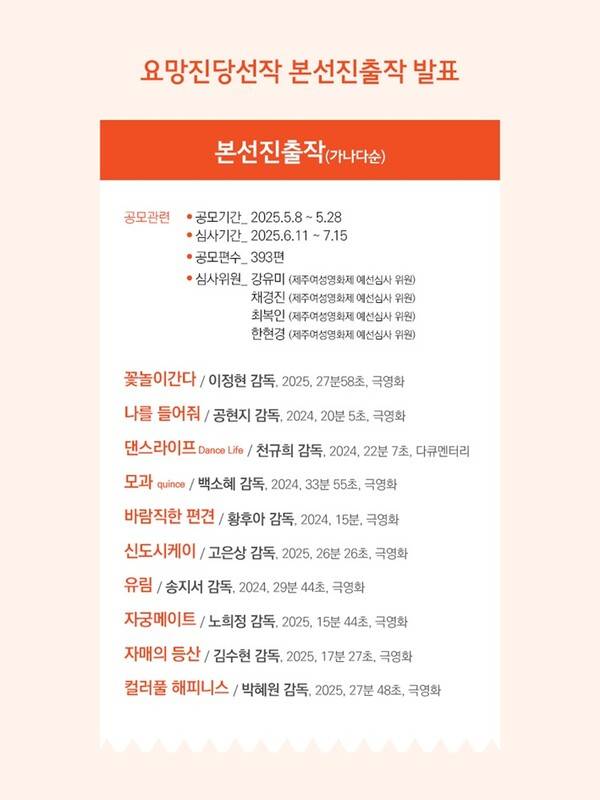 제26회 제주여성영화제, 요망진당선작 본선진출작 발표