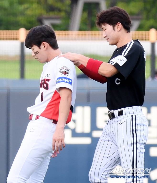 [광주=스포츠조선 정재근 기자] 경기 전엔 친한 사이지만, 승부에서는 누구보다 이기고 싶어했다. 호랑이 무리 속으로 들어가 선후배의 정을 아낌없이 나눈 LG 트윈스 박해민이 9회초 극적인 동점 스리런포로 상대팀에 비수를 꽂았다. 팀도 살리고, 극심한 타격 부진에 빠진 자신을 살린 한 방이었다.
