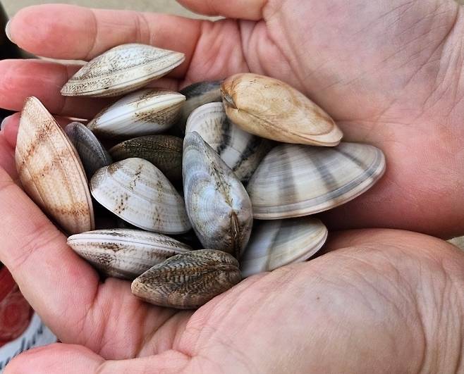 째복은 양양에서도 흔히 볼 수 있는 조개류로, 별다른 도구 없이 손이나 발로 모래를 살짝 파기만 해도 쉽게 잡을 수 있다.