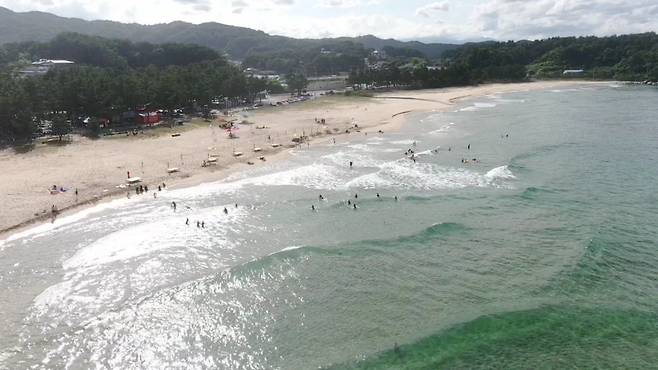 | ▲ 양양군 바다 서핑을 즐기는 바다 아래로는 째복이 가득하다 |