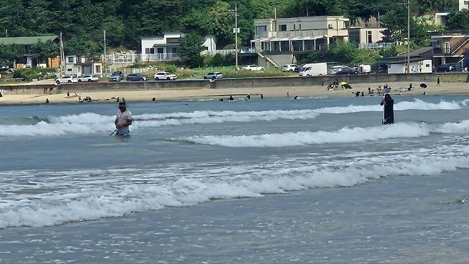 | ▲ 째복잡는 사람들 양양바다에서 바다를 어슬렁거리는 사람들이 있다면 조개잡는 사람들 |