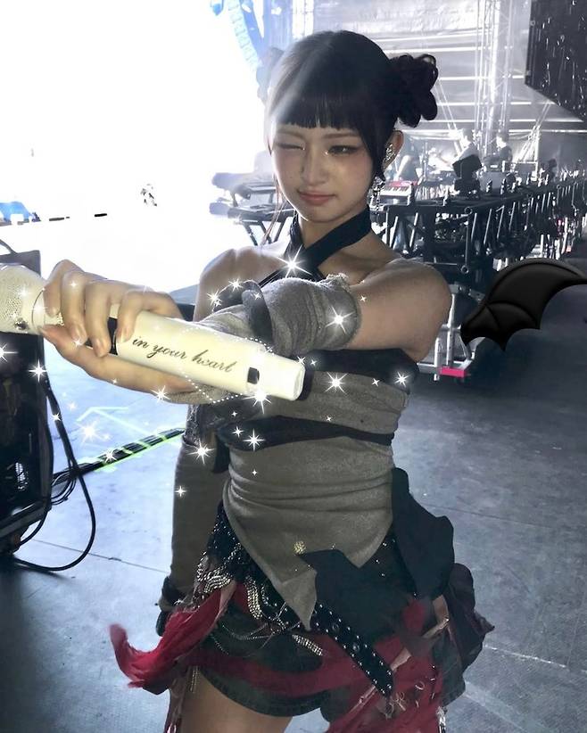 그녀는 마이크를 들고 포즈를 취하며 무대 뒤에서 찍은 사진을 공개했다. 특히, 블랙과 그레이 톤의 의상과 함께 스타일리시한 헤어스타일이 눈길을 끌었다.