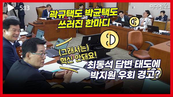박 의원은 최 처장이 돌아보자 “인사하고 가야지! (그러면) 혁신 안 돼요”라고 뼈 있는 농담을 던졌다.