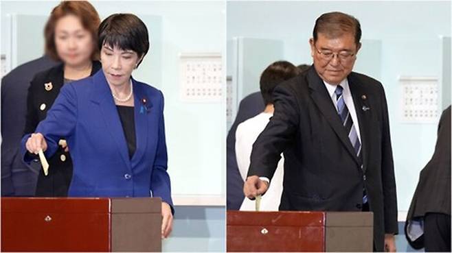 ▲ 지난해 9월 자민당 총재 선거 때 투표하는 다카이치·이시바 후보