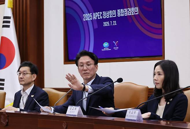 김민석 국무총리가 23일 아시아태평양경제협력체(APEC) 준비현황을 점검한 뒤 "비정상의 길을 걸었던 지난 정부의 준비가 미진했다"고 밝혔다.