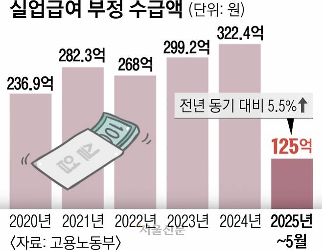 올해 5월까지 적발된 실업급여 부정 수급 규모가 125억원에 이르는 것으로 확인됐다.