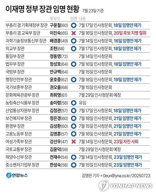 [그래픽] 이재명 정부 장관 임명 현황(종합)