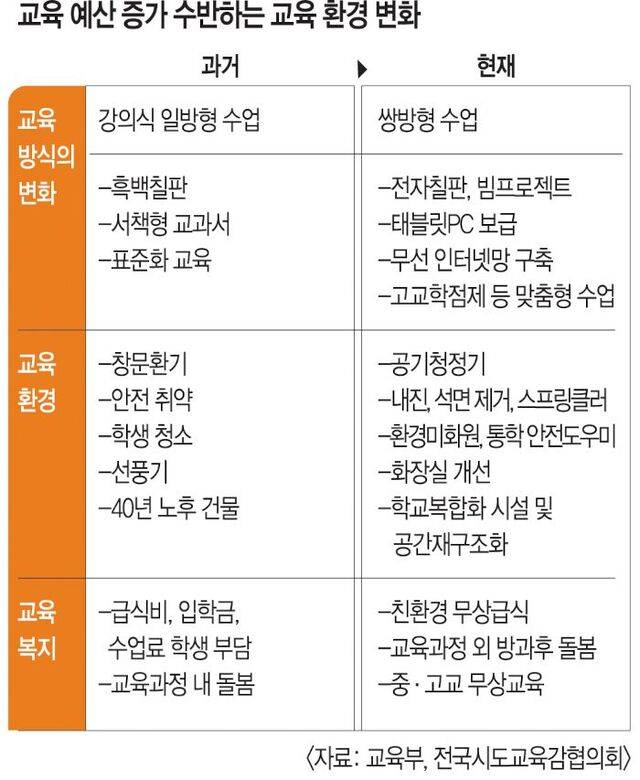 정부 내에서는 지자체에서 교육청으로 넘어오는 시·도 전입금 축소 논의가 이뤄지고 있다. 초·중등 학교 예산을 쪼개 대학에 나눠주는 고등·평생교육지원 특별회계(2조1000억원)도 연장될 예정이다. 당초 올해까지만 지원 예정이었지만 정치권은 당분간 계속 지원하는 쪽으로 가닥을 잡았다.