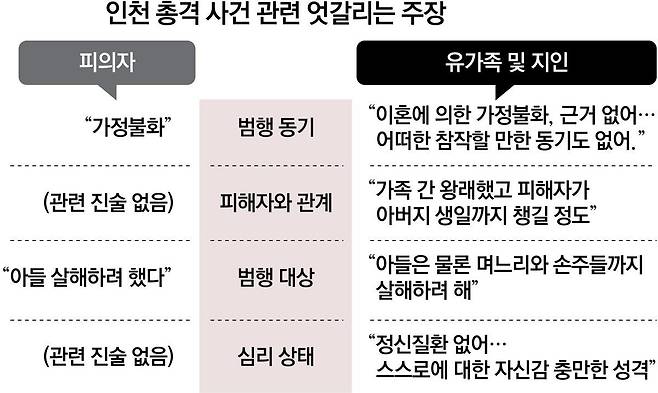 범행 상황에 대해서도 양측 주장이 갈린다. 조 씨는 경찰 조사에서 “아들만 살해하려고 했다”고 진술했다. 하지만 유족들은 조 씨가 아들뿐 아니라 며느리와 두 손주도 살해하려 했다고 주장했다. 유족들은 “사건 당일인 20일 조 씨는 며느리가 아이들이 숨어 있는 방문을 잠그자 수차례 문을 열려 하며 밖으로 나오라고 위협했다”면서 “하지만 문을 여는 데 실패했고, 총기도 작동하지 않아 (추가 범행에) 실패했다”고 당시 상황을 설명했다.