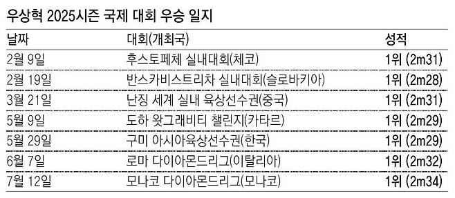 쉼 없는 훈련과 실전 소화는 우상혁의 일상이다. 그는 “지난해 파리 올림픽을 마친 뒤 ‘쉬는 건 없다’고 마음먹었다. 선수 생활을 하는 동안에는 나 자신에게 여유를 줄 생각이 없다. 은퇴한 뒤 쉬면 된다”고 했다. 그가 이렇게 마음을 다잡은 건 당시의 아픈 기억 때문이다.