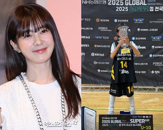 사진에는 이요원의 아들이 '2025 국민고향정선컵 전국 유소년 농구대회'에서 우승 트로피를 들어 올리고 있는 모습이 담겼다.