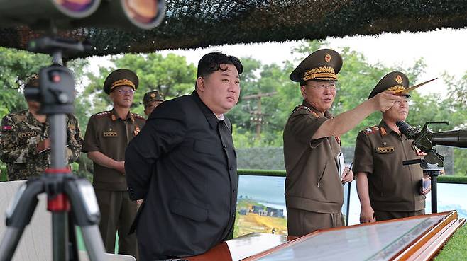 김정은, 포사격 훈련 참관…"가장 확실한 전쟁억제력은 철저한 주적 관점"