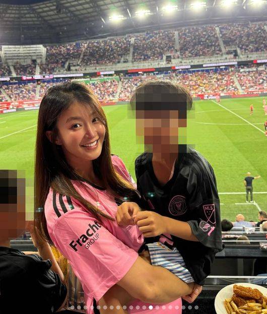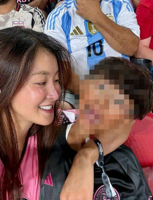 공개된 사진에는 이시영이 아들 정윤 군과 미국 뉴저지 레드불 아레나에서 열린 리오넬 메시 출전 경기를 직관하는 모습이 담겼다.
