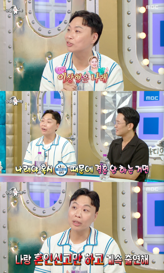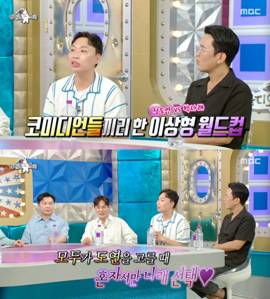 박나래에 대해서는 “박나래는 관심이 없다가 어디서 장도연과 박나래가 남았으면 이상형 월드컵을 했다. 모두가 도연을 고를 때 혼자서만 박나래를 선택했다. 얼굴 생김새는 박나래가 이상형이다. 그 얘기가 퍼지면서 얘기가 나온 거다”고 했다.