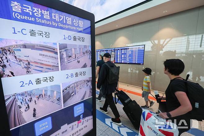 [인천공항=뉴시스] 권창회 기자 = 본격적인 여름 휴가철이 시작된 24일 인천국제공항 제2여객터미널 출국장이 여행객들로 붐비고 있다. 2025.07.24. kch0523@newsis.com