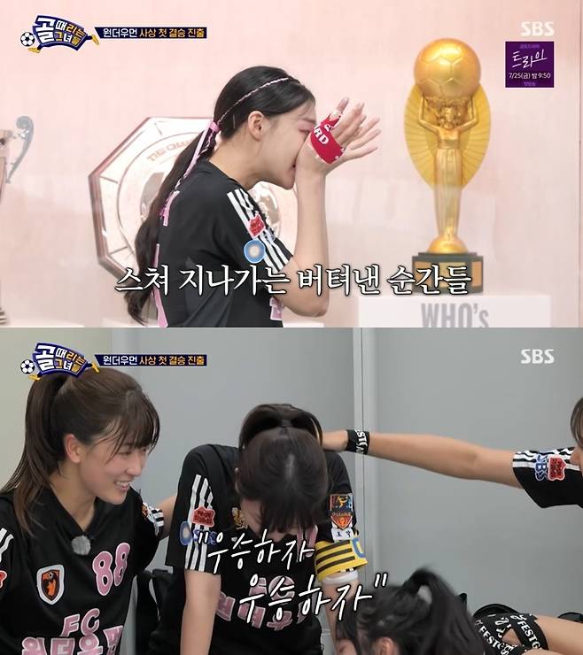 이로써 원더우먼은 역대 <골때녀> 리그전 참가 이래 창단 처음으로 결승전에 진출하는 기쁨을 만끽했다. 원더우먼은 다음주(30일) 방영되는 FC 구척장신 대 FC 국대패밀리의 승자를 상대로 우승을 노릴 수 있게 되었다.