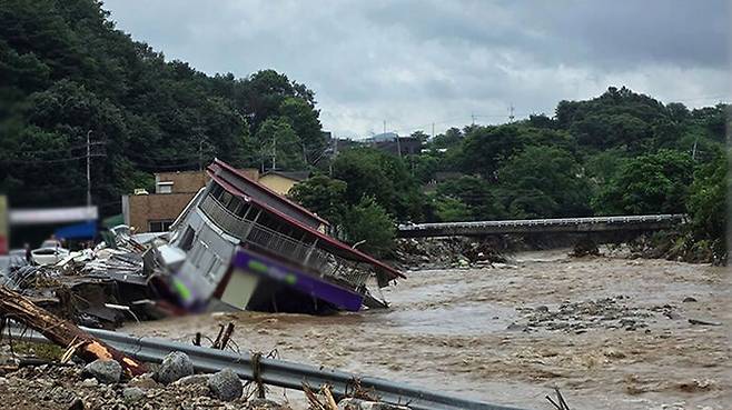 ▲ 지난 23일 경기도 가평군 조종면 수해 지역에서 편의점 건물이 무너져 있다.