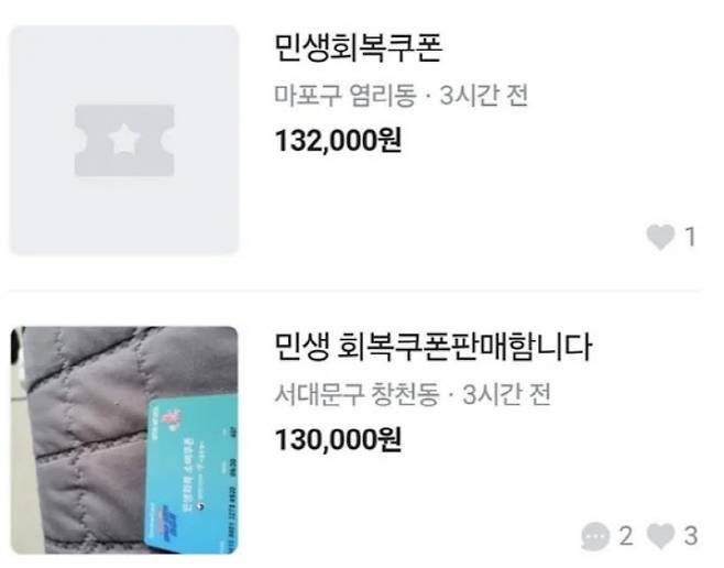 민생쿠폰 발급 첫날부터 중고거래 플랫폼에는 선불카드를 표기액보다 적게 내놓는 깡 행위가 여러 건 등록돼 논란이 일었다. 소비쿠폰을 개인 간 거래하는 행위는 물론 플랫폼 역시 처벌받을 수 있다.