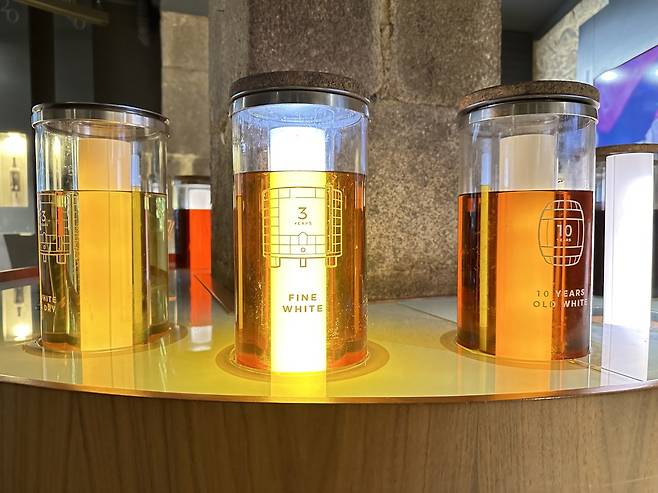 ▲ 포르투 와인의 숙성: 숙성연도에 따라 색이 진해진다.
