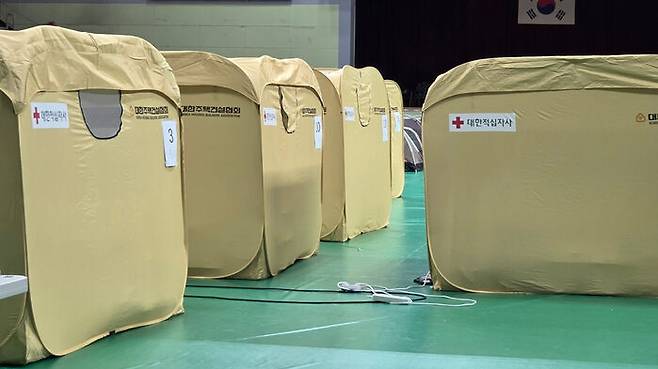 지난 22일 오후 3시 기준 이곳 체육관 내 대피소에서 지내는 피해 주민은 24가구 64명으로 파악됐습니다.