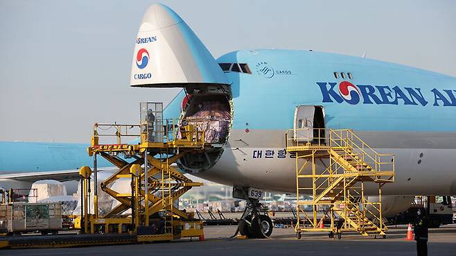 ▲ 인천국제공항에서 수출 화물 선적하는 화물기