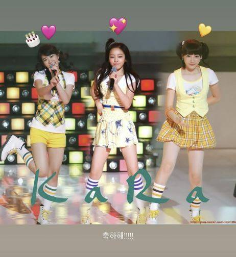 이와 함께 데뷔곡인 카라 'Rock U' 무대 사진을 업로드했다. 사진 속엔 강지영과 함께 카라 새 멤버로 합류한 고(故) 구하라의 모습도 함께였다. 카라 멤버 한승연, 박규리, 니콜의 모습도 볼 수 있다.