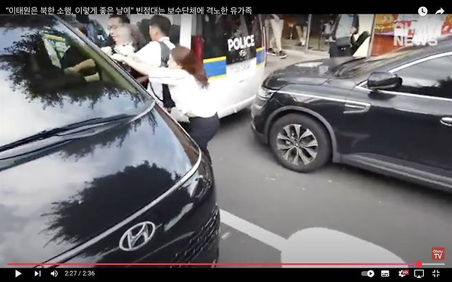 | ▲ 23.7.25. 극우단체 회원이 이상민 행정안전부 장관 무죄 판결에 유가족들을 폄훼하자, 유가족이 차량으로 달려들었다. |