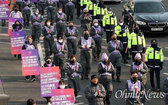 "물품 반입도 안 됐어요. 추운 날씨에 미니 난로를 들고 오다가 경찰과 실랑이를 벌이던 가족분이 쓰러지셨고, 결국 뇌진탕 진단까지 받으셨어요."