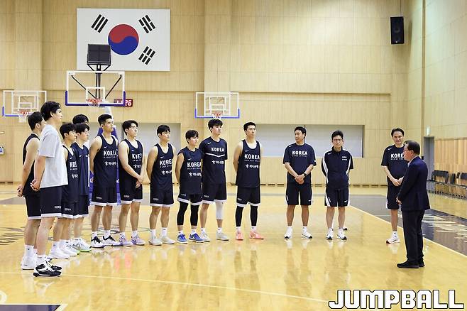 오전 훈련 종료 후 대표팀 앞에 이수광 총재가 섰다. 이수광 총재는 “평가전을 봤다. 농구팬들이 굉장히 좋아하시더라. 승리보다 경기를 뛰는 모습 자체에 팬들이 열광했다. 기대되 되고 이대로만 계속 해준다면 프로농구가 발전하는데 도움이 되지 않을까 싶다. 열심히 해서 좋은 결과를 얻었으면 좋겠다”며 응원의 한 마디를 남겼다.