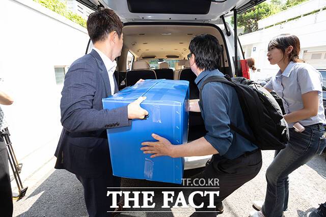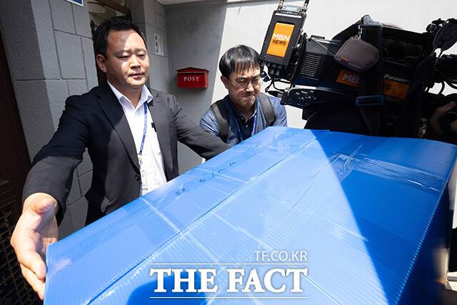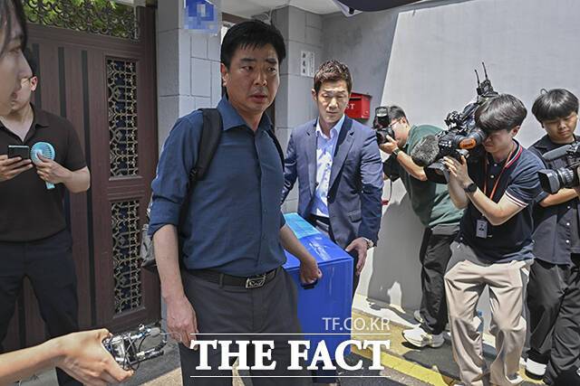 [더팩트ㅣ임영무 기자] 12.3 비상계엄 관련 내란·외란 혐의를 수사중인 내란 특검(특별검사 조은석)팀이 24일 오후 서울 종로구 한덕수 전 국무총리의 자택에 대한 압수수색을 마친 뒤 압수품을 차량으로 옮기고 있다.