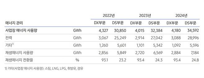 | ▲ 삼성전자의 재생에너지 전환율은 31%, 그중에서 반도체를 제조하는 DS부문은 24.8%(2024년)에 그칩니다. |